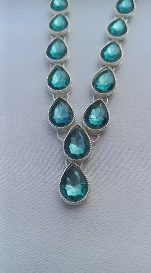 - Contains : 1 Necklace + 1 Pair of Earring + 1 Maang Tikka; Color: London blue.
