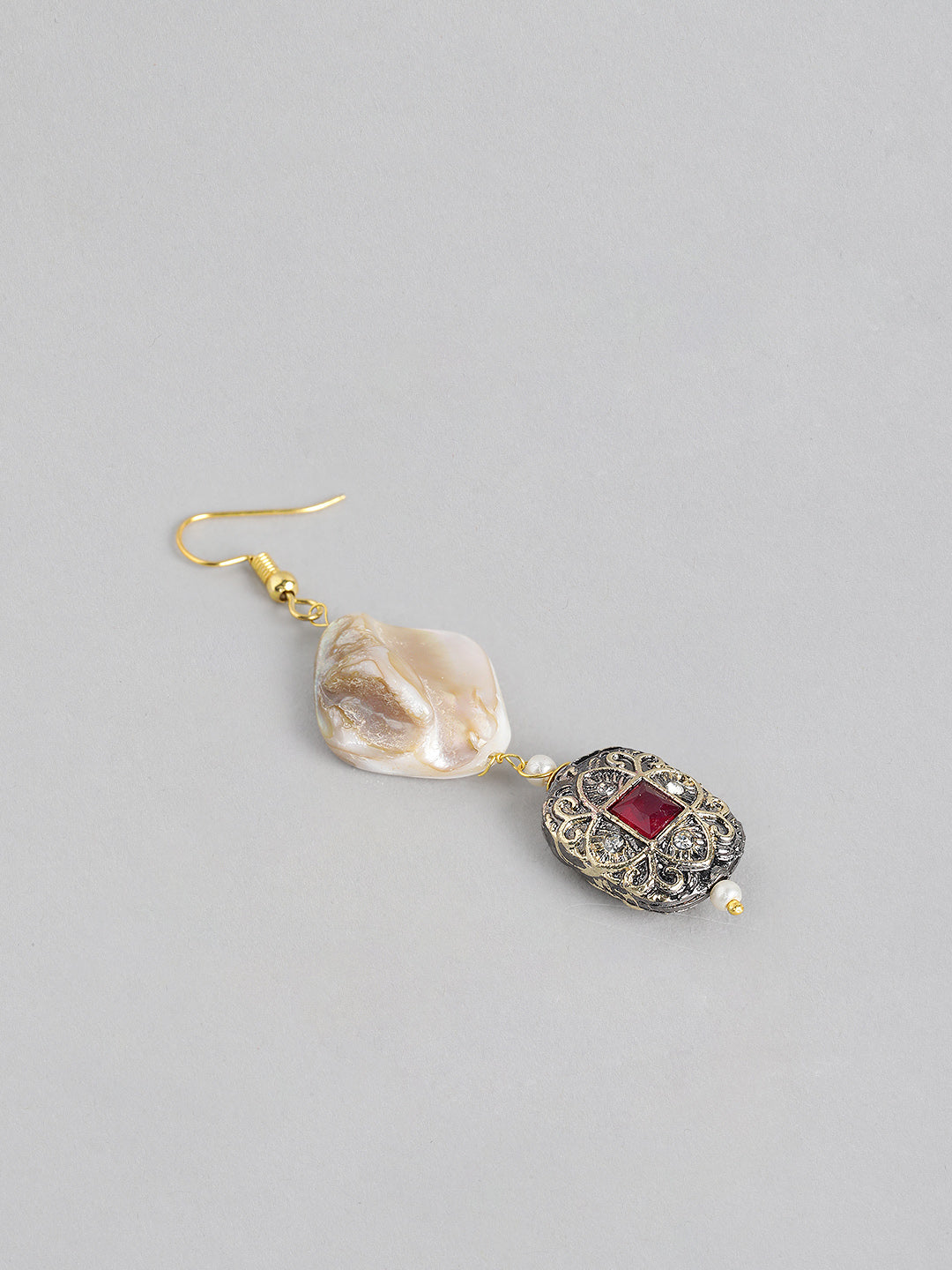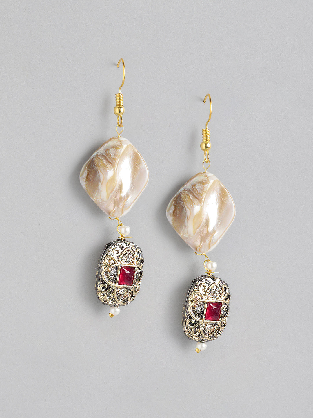 Off-White & Green Gold-Plated Beaded Necklace Set with Matching Drop Earrings - M2